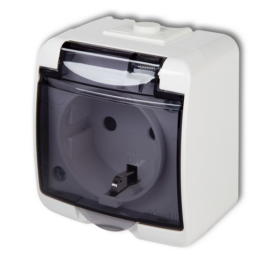 Aquastar földelt dugaszolóaljzat, átlátszó csapófedéllel, IP54, fehér