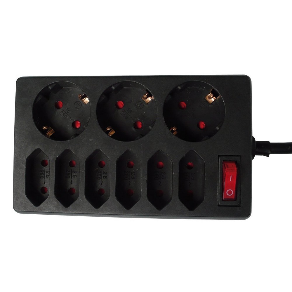 Asztali elosztó 6 Euro +3 földelt dugalj, kapcs.1.4m, fekete 00250171