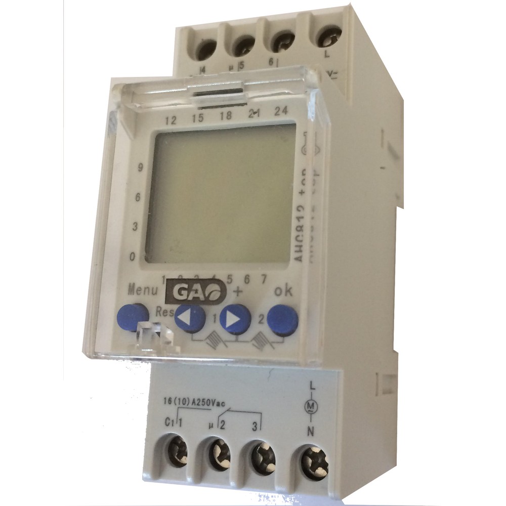 Időkapcsoló, digitális, heti, DIN sínre 2 modulos , 2 csatornás